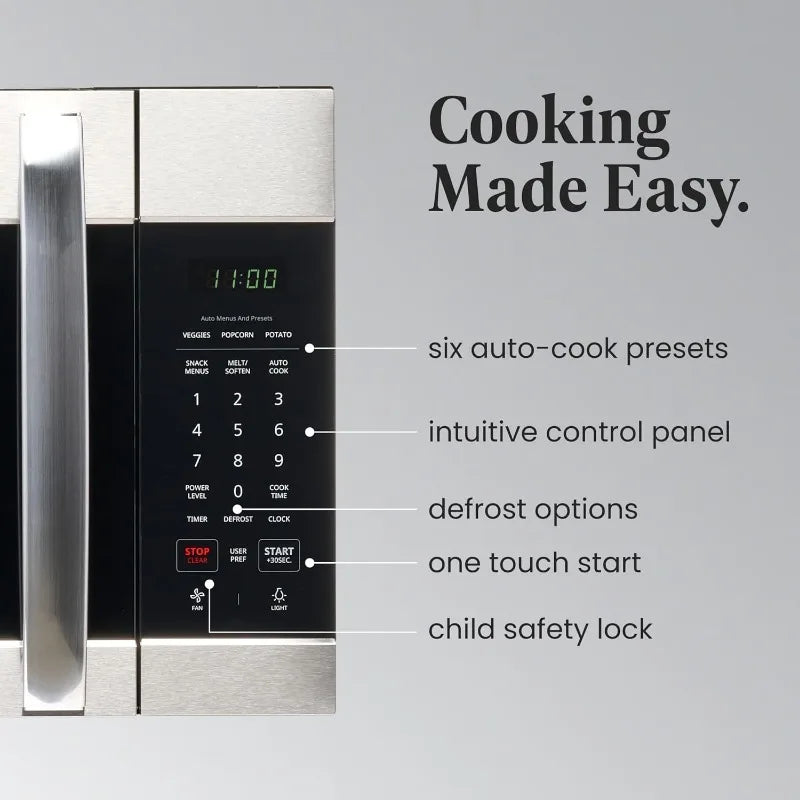 Farberware Over-the-Range Microwave Oven, 1.7 Cu. Ft. - 1000W - Auto Reheat,Multi-Stage Cooking,Melt/Soften Feature,Safety Lock