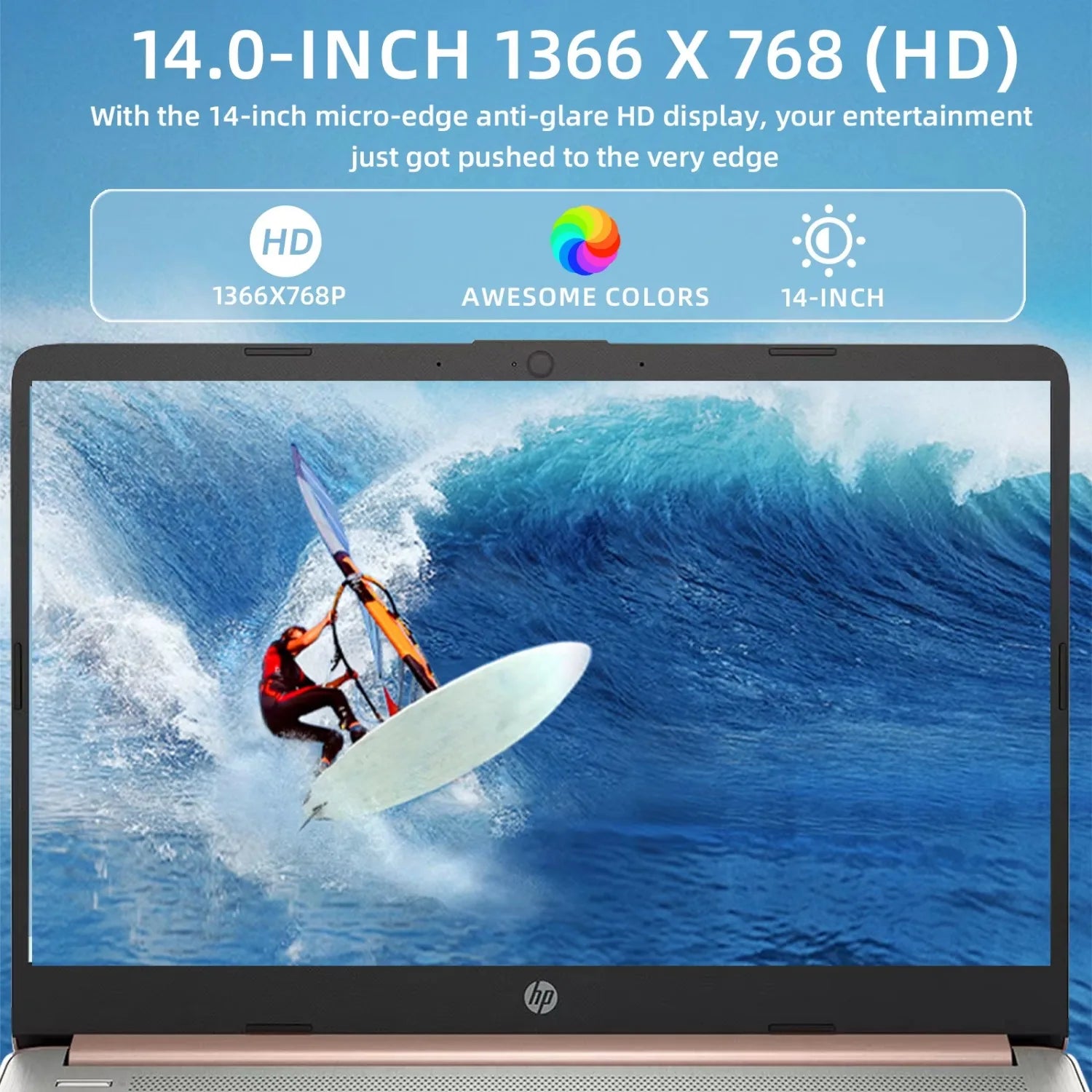 HP 14" Business Laptop,Intel Celeron N4120,16GB RAM,384GB Storage(128GB eMMC+256GB SD Card),Windows 11 Home