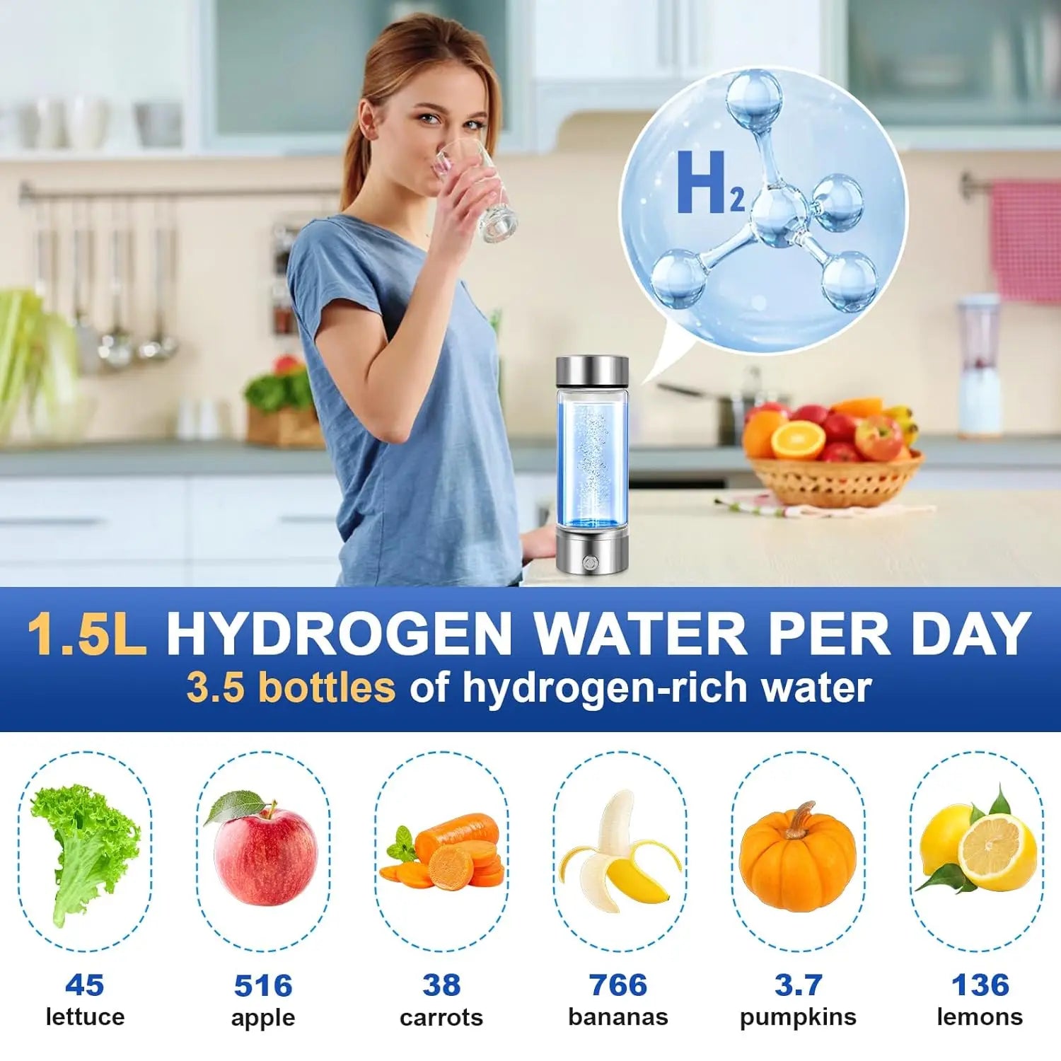 Hydrogen-Rich Water Cup Electric Water Generator Bottle Dual Chamber Filter Cups Antioxidant Water Bottle Titanium Quality Glass